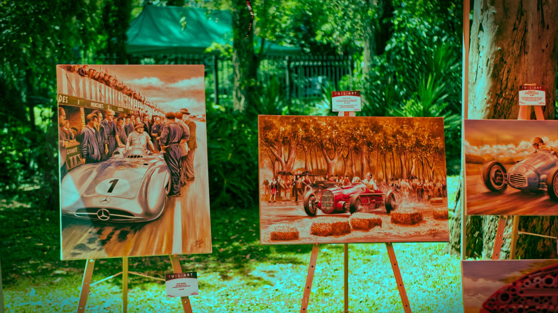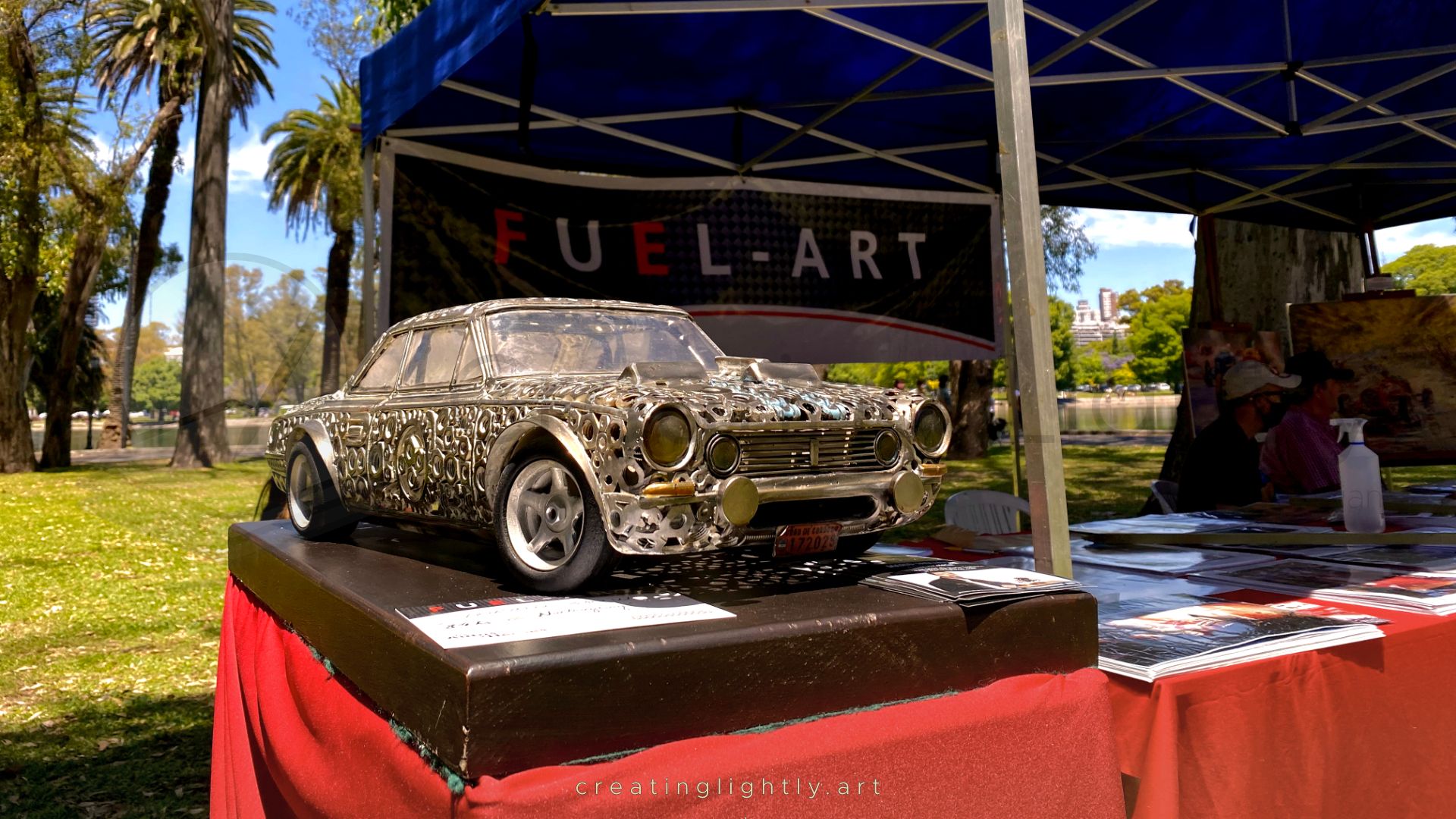 It was an event by the automotive art collective FUEL-ART based in Argentina, and it was done in a place called “Paseo Fangio” in Buenos Aires. It included a ton of art in his honour, as well as some cars related to him as well, like one of the IKA Torino’s that raced the “84 Hours of Nürburgring” in 1969.